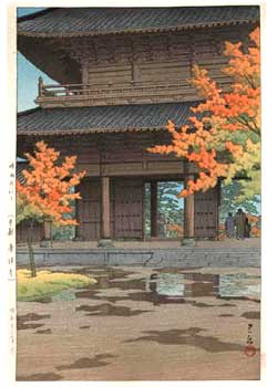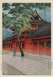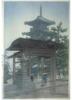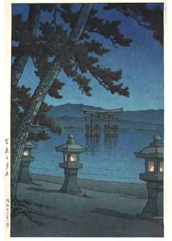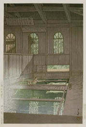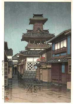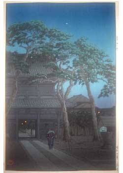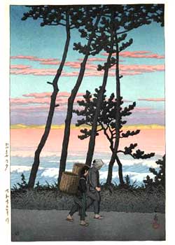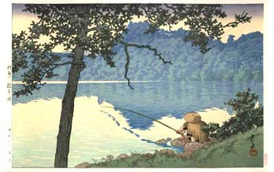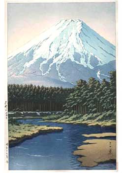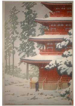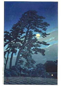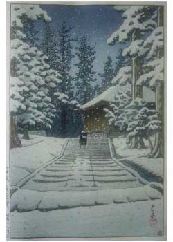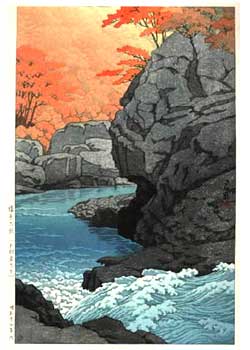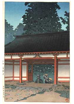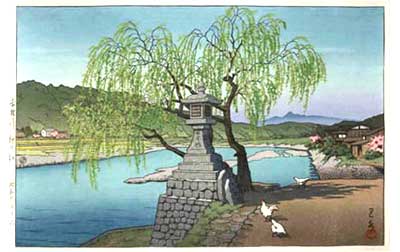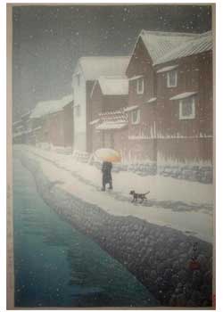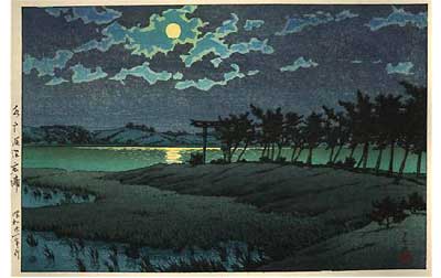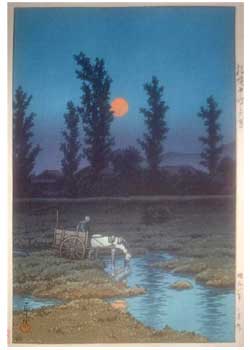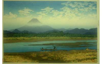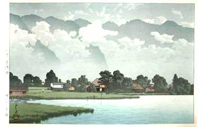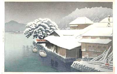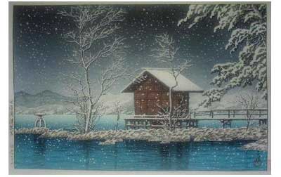 川瀬巴水は 明治16年に生まれ、西洋画を学んだ後浮世絵版画の復興を目指す渡邊庄太郎と出会い、新しい浮世絵版画「新版画」の制作に加わる。外国では広重、北斎と同様に評価されている。