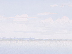 浮世絵と西洋画をミックスしながら透明感のある風景を描いている。